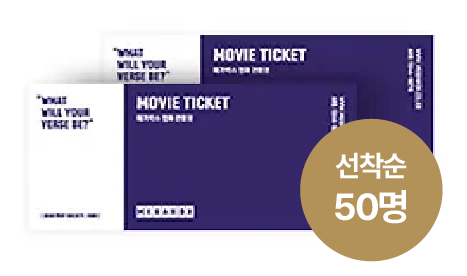 선착순 50분께 감사의 선물로 메가박스 영화티켓(1인 2매)을 증정합니다.
